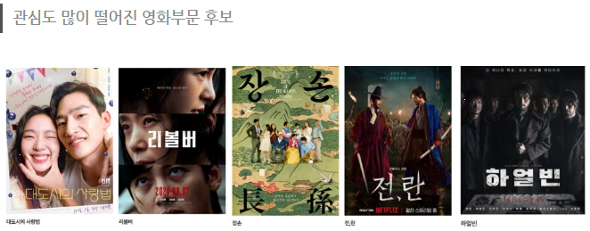 영화 부문은 상대적으로 대중적 관심이 떨어졌다는 평가가 주를 이룹니다.